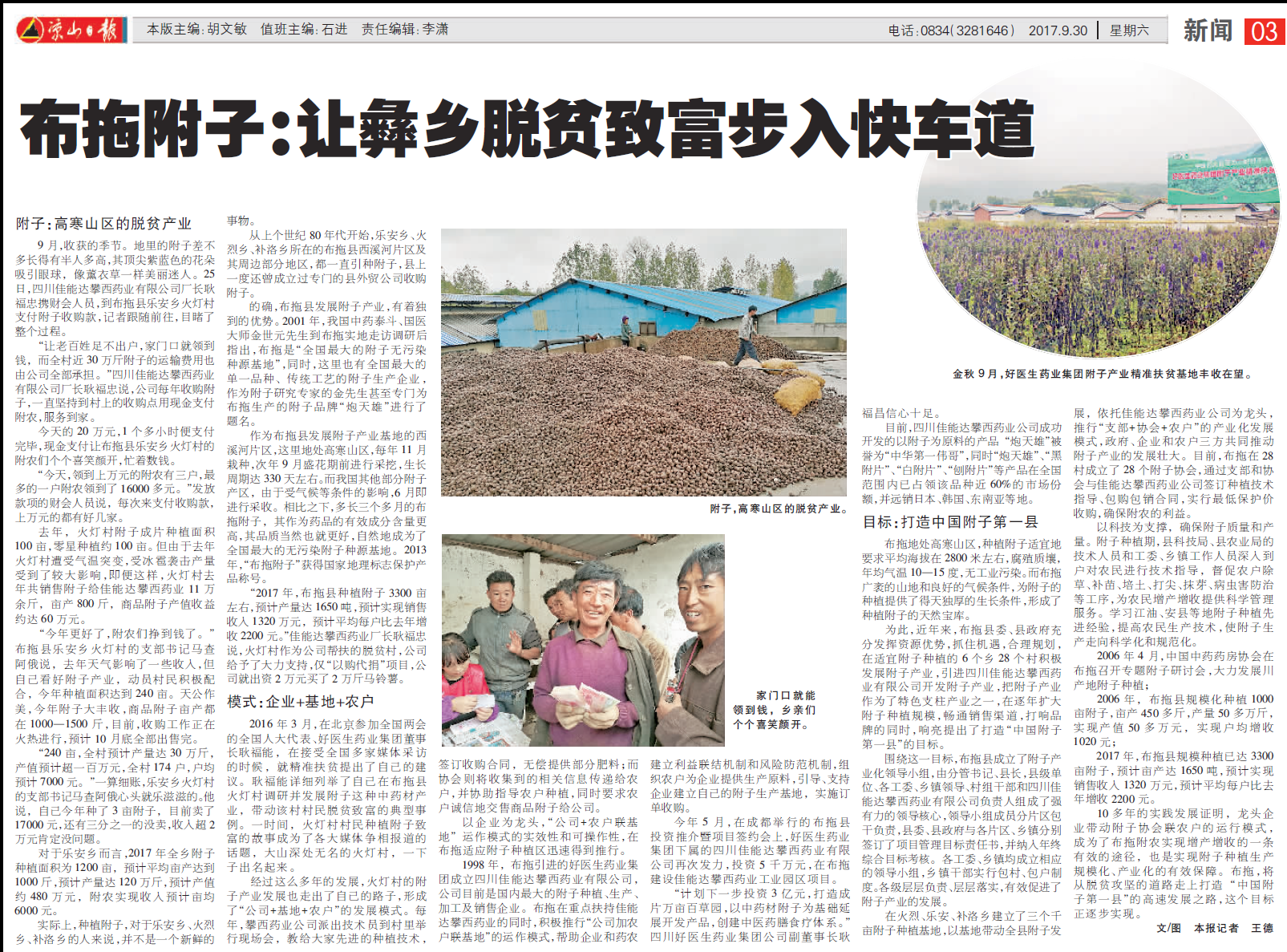 位于涼山州布拖縣的好醫生集團附子中藥材標準化種植示范園區