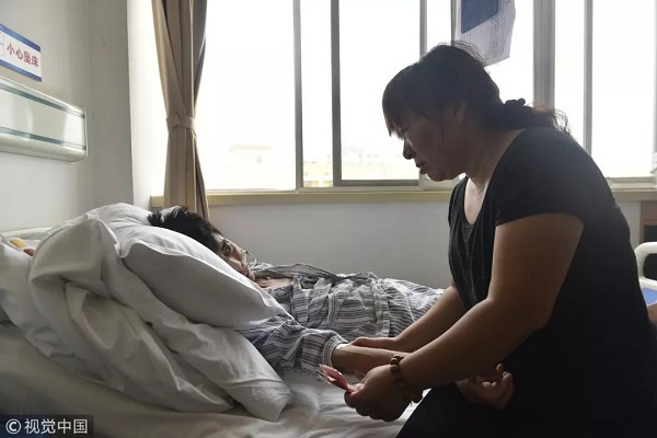 2017年6月20日,一位42歲的胃癌晚期患者,也是一位背負(fù)著全村吃水錢的村主任/視覺中國(guó)
