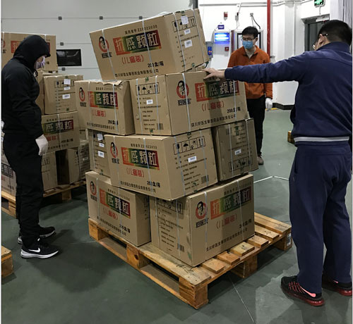 2020年2月8日下午,在得知大卡車還有2個小時就要下高速,江西商務(wù)經(jīng)理馮萍和一起幫忙的家人,康復新事業(yè)部省區(qū)經(jīng)理勒系儀,抗感事業(yè)部江西省區(qū)經(jīng)理許昊等早早地守候在高速公路出口。在得知情況后,康復新事業(yè)部大區(qū)總監(jiān)張小琦,也毫不猶豫放棄和家人團圓過節(jié),迅速趕了過來幫忙。