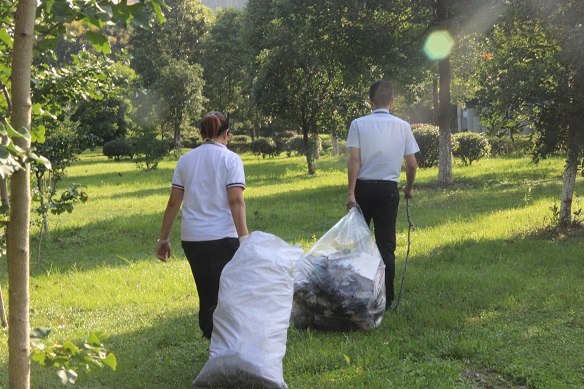 很快,二三期廠區外圍、廠區內圍墻周圍的所有垃圾全部清理完畢。看著整潔的廠區,綠油油的草地,所有的辛苦都值得了。(綿陽基地 張艷)